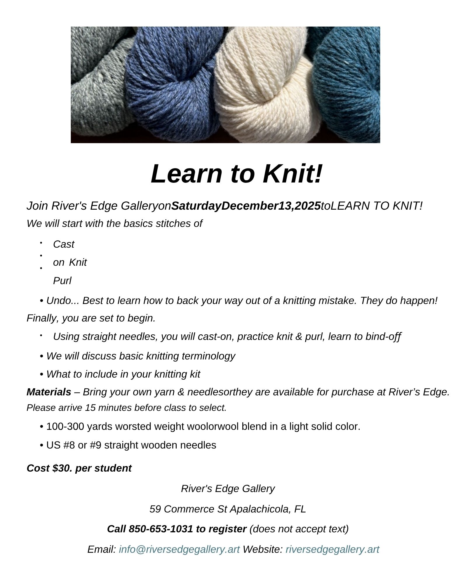 River’s Edge Knitting Class
