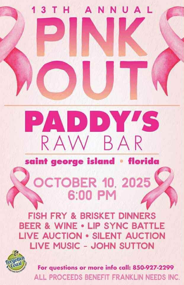 The annual Pink Out will be held on Friday October 10 at Paddy’s Raw Bar on St. George Island. This event benefits the Franklin Needs group which provides free mammograms and other services to local residents. Get ready for a fun filled night including an entertaining “woman-less pageant”, raffles, cool merchandise, live music, food, lots […]