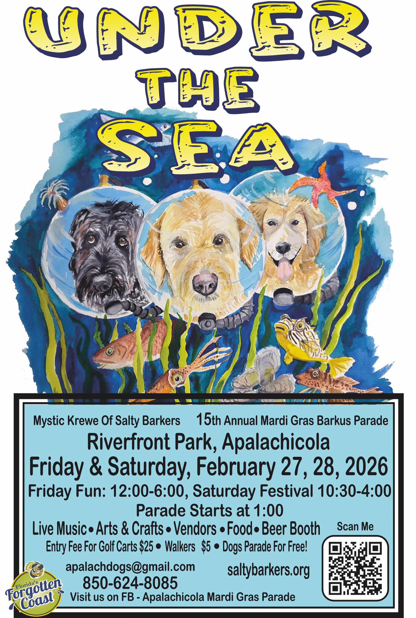 The Mystic Krewe of Salty Barkers will celebrate Mardi Gras Apalach-style on February 27-28, 2026, at Riverfront Park in Apalachicola, FL. This beloved coastal tradition features a lively street festival and the 15th Annual Mardi Gras Barkus Parade, a parade of costumed dogs and their people. Guests are invited to dive into the fun in […] |